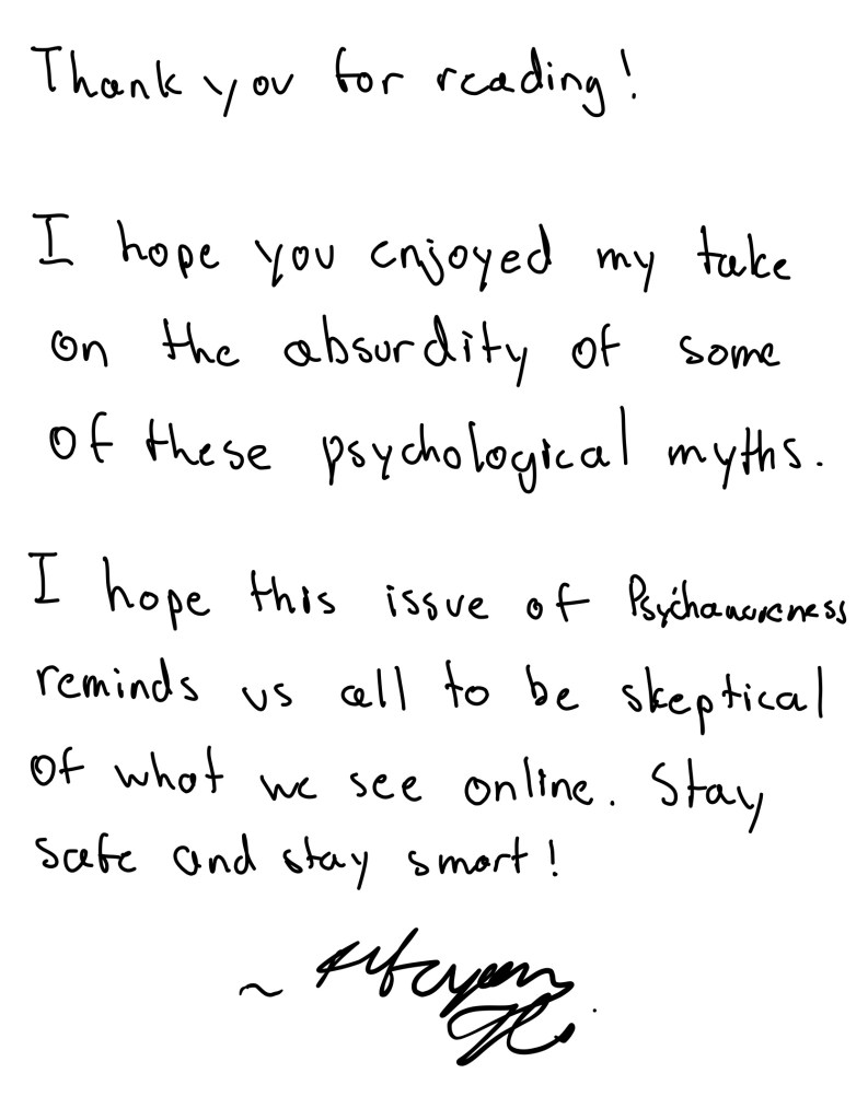 This is perhaps the most serious and grim pop-psych myth. Films and other media propagate negative representations of people who have mental disorders, which have built up stereotypes that cause prejudice. What’s more, we are quick to fear those who act differently than the norm. Let us not make fundamental attribution errors in judging other people.